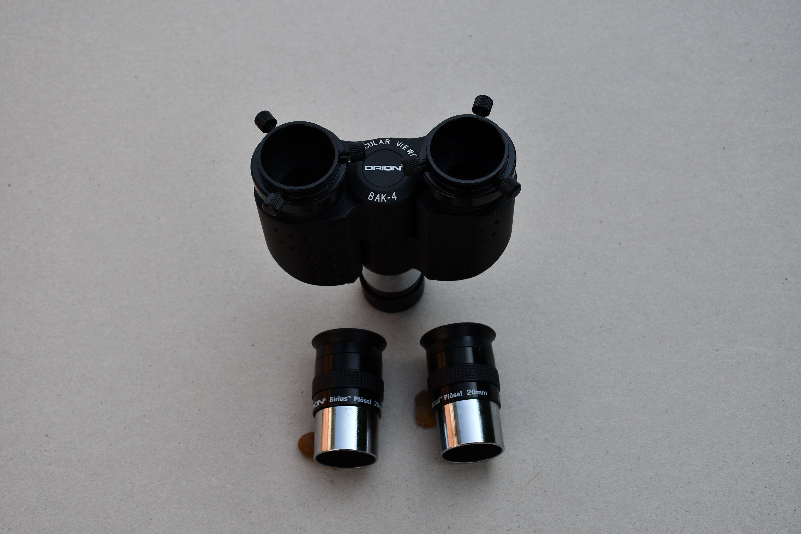 Orion Binocular finder is aluminum construction and contains multi-coated BAK-4 prisms, providing high light transmission. Individual focusing for each eye. The viewer's 1.25" nosepiece is threaded to accept filters. Can be used on any type of telescopes. On reflectors or short-focal-length refractors a barlow lens made be needed to accommodate the requirement for 4" of additional inward focus travel.